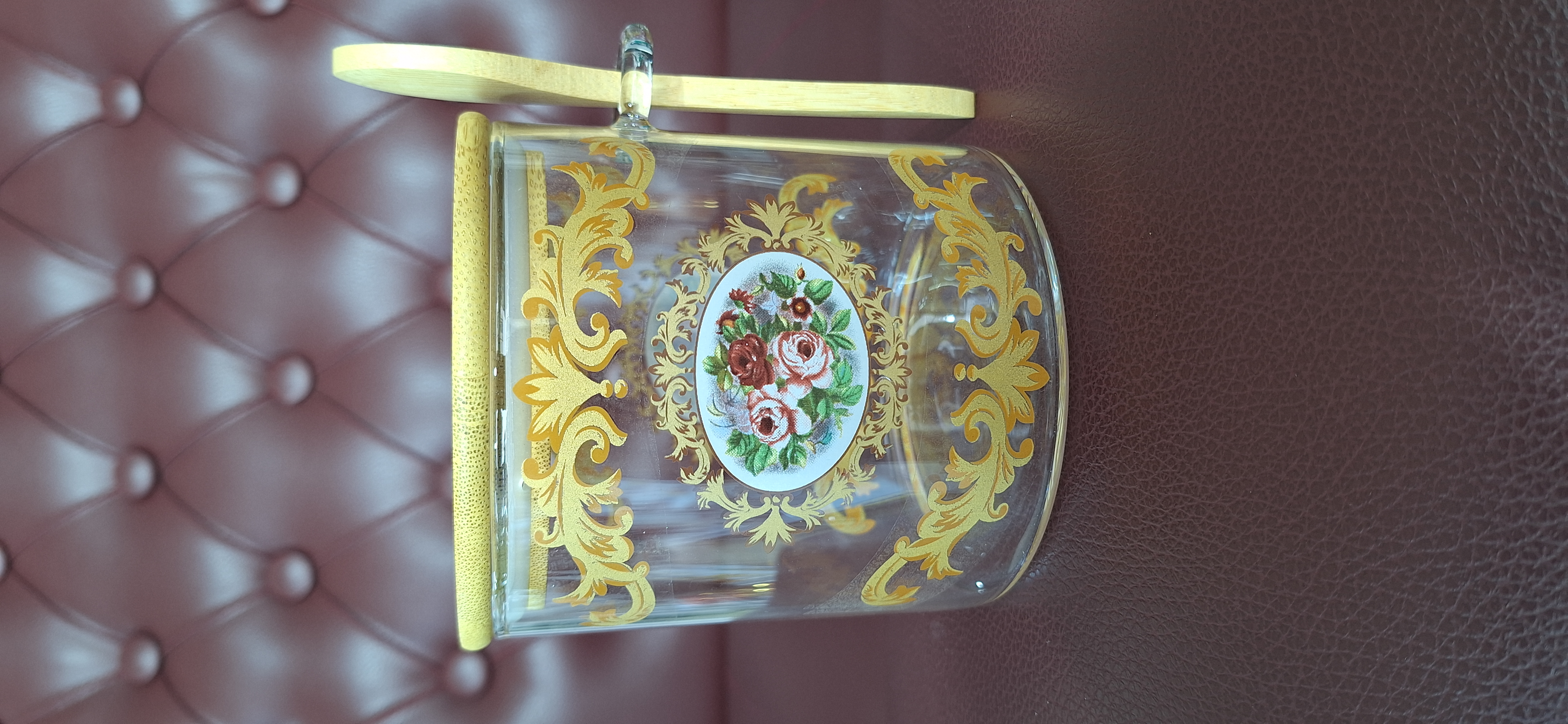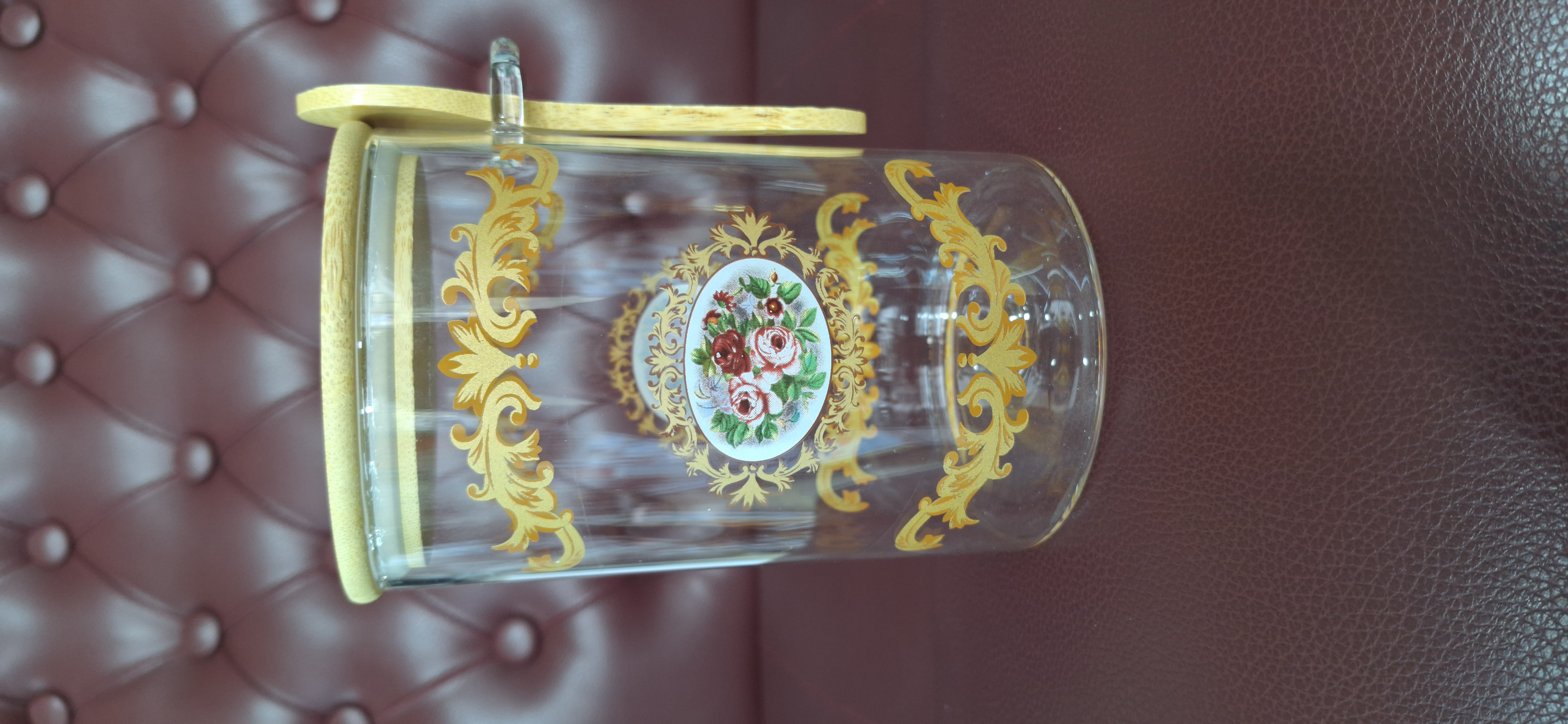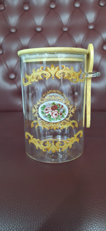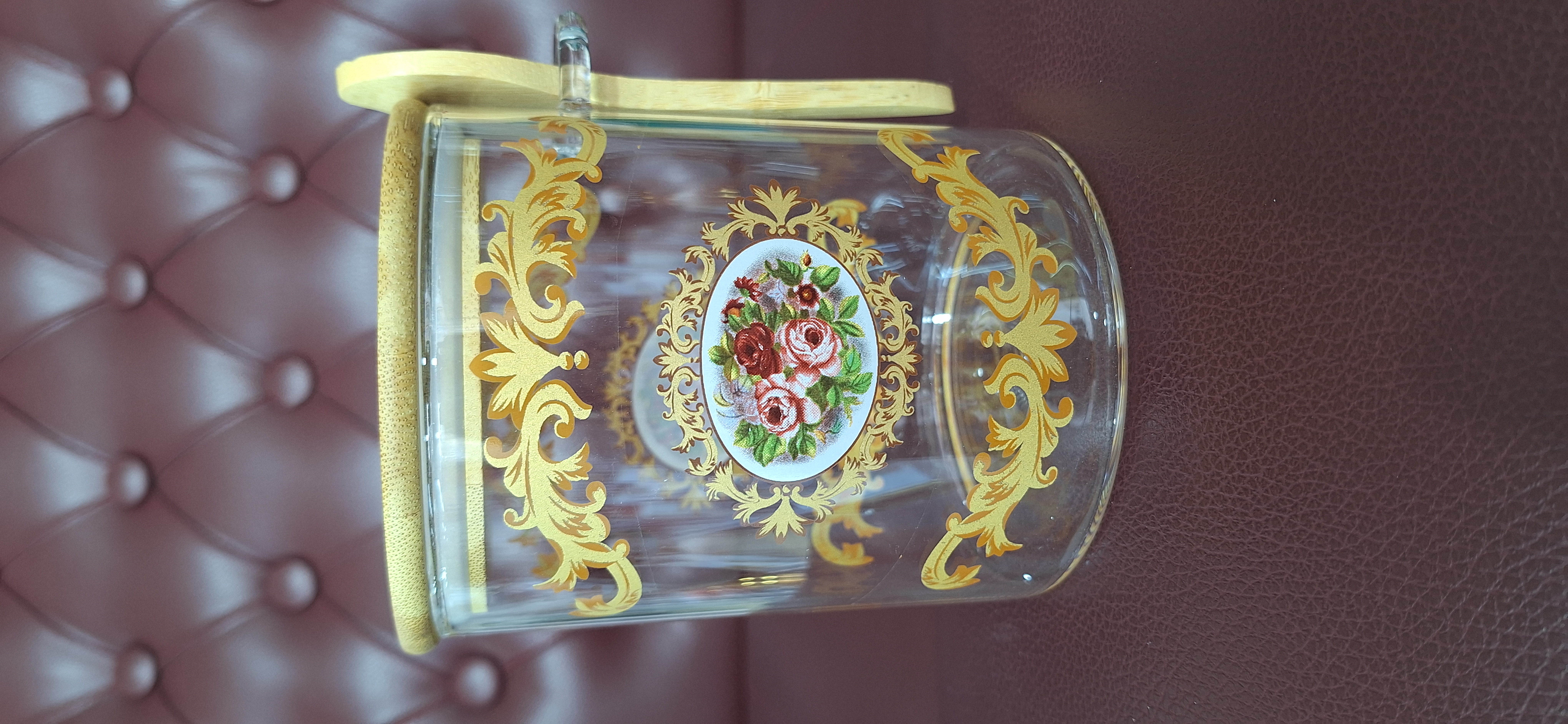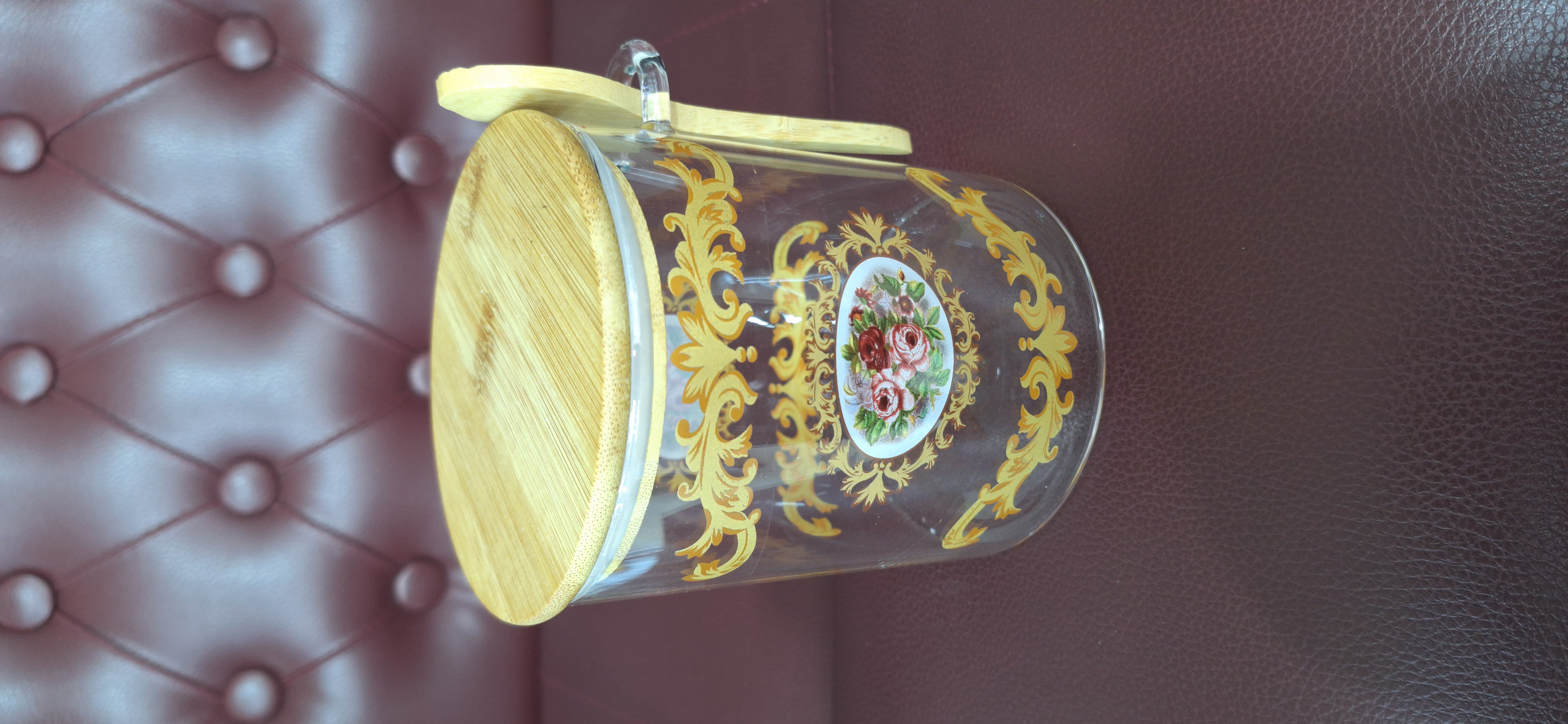 بانکه گرد پیرکس درب بامبو قاشق دار ست 3 تایی وارداتی طرح گل رز l اصل ( شرکتی )