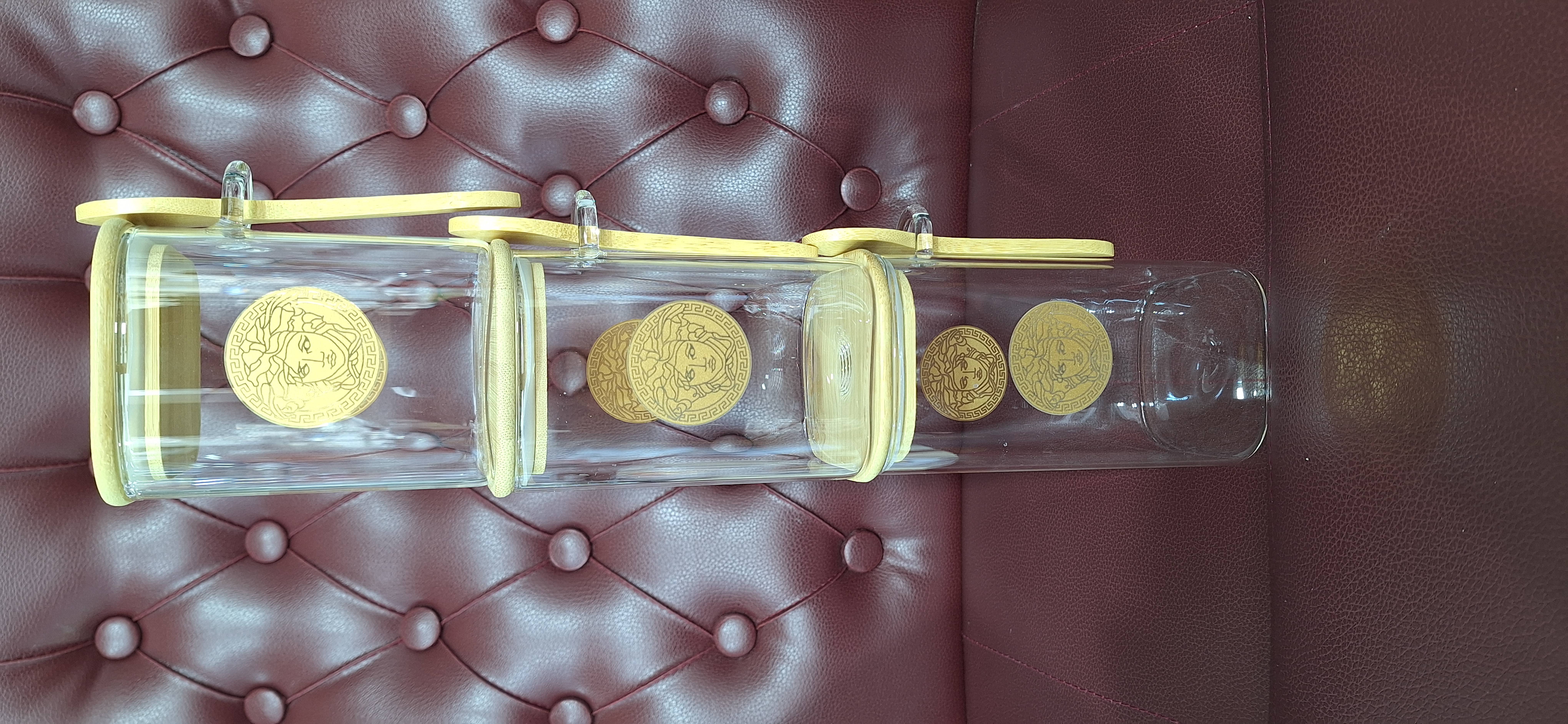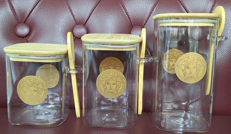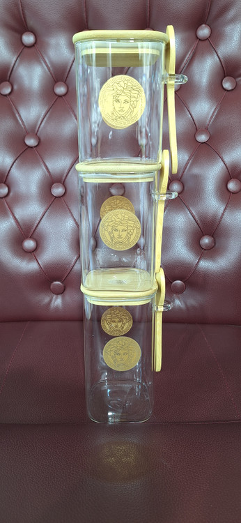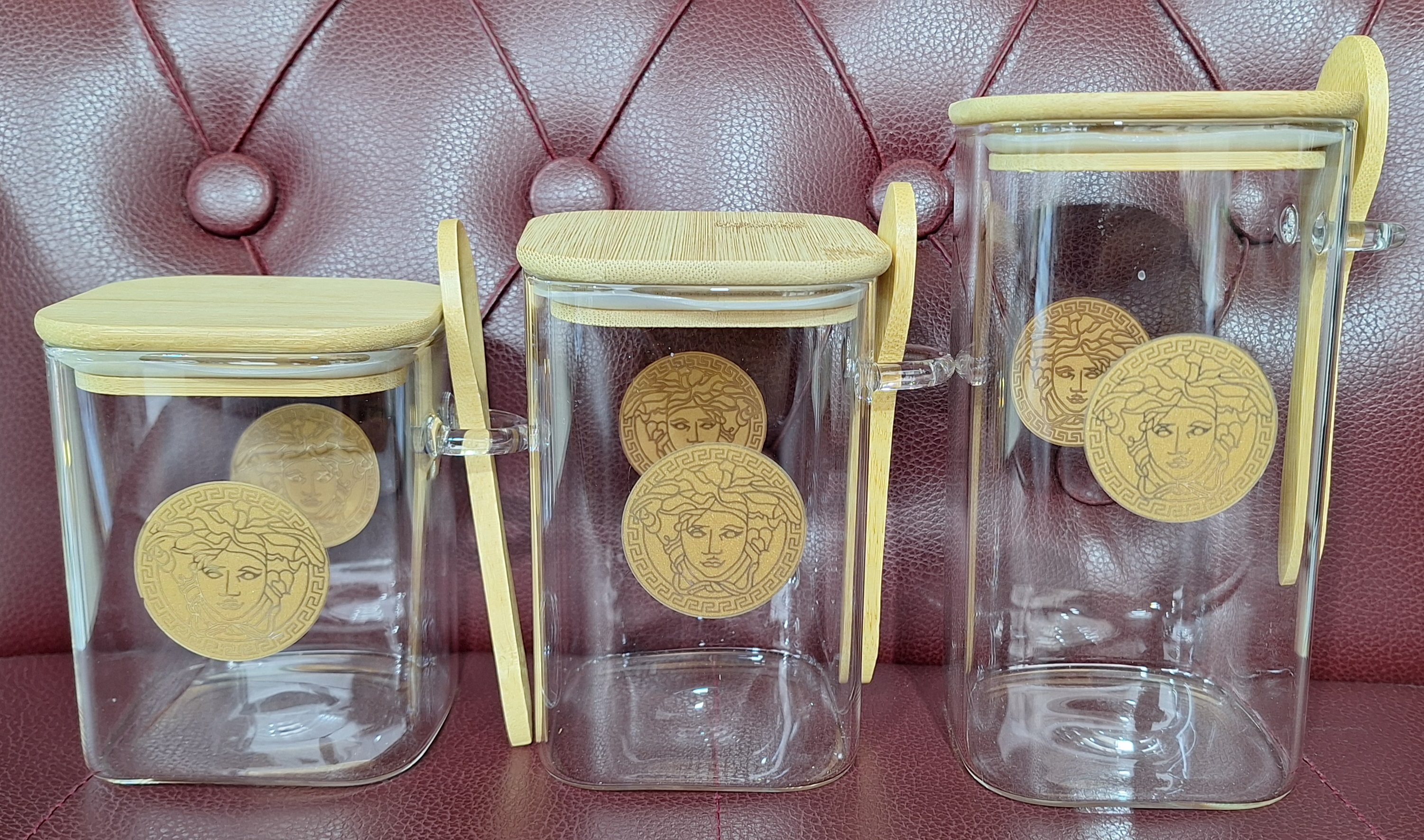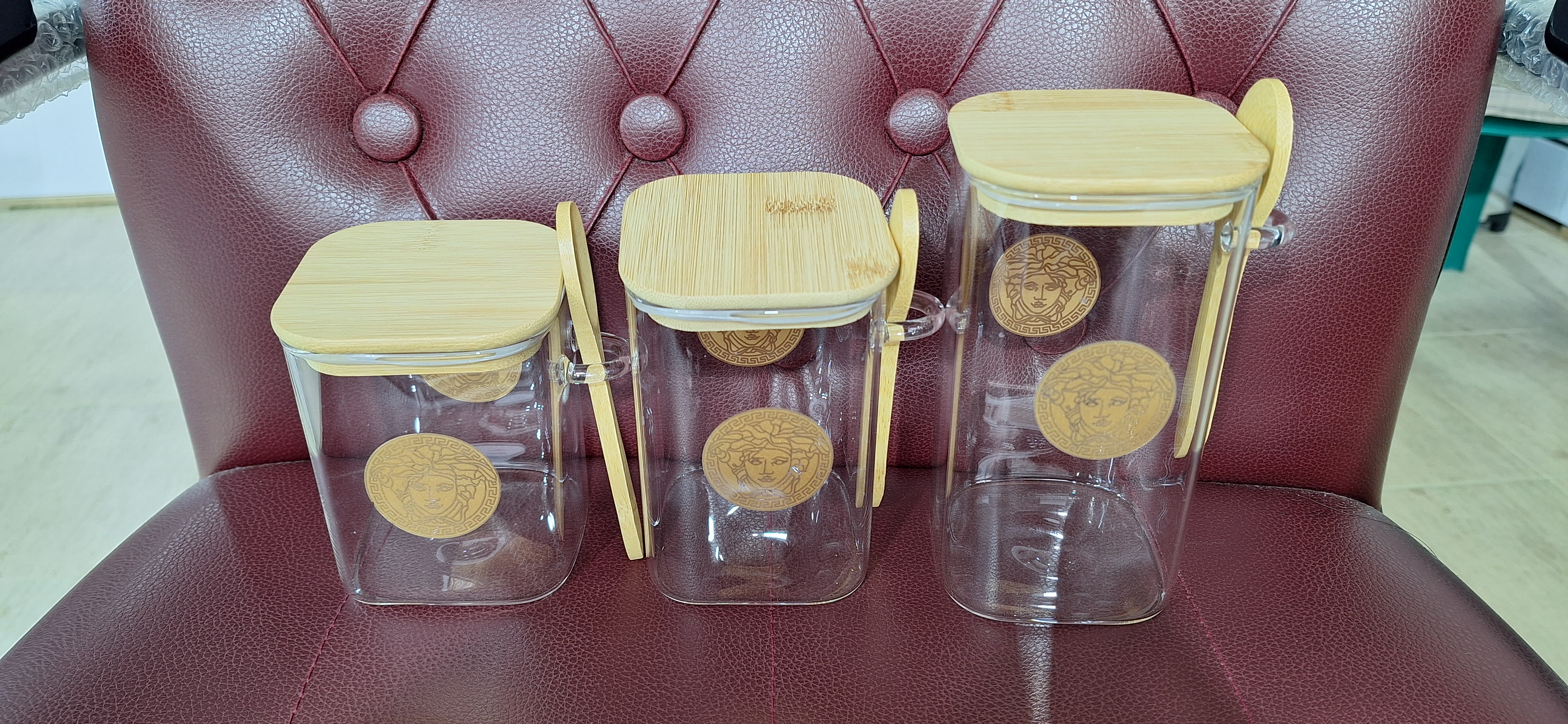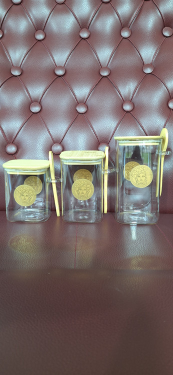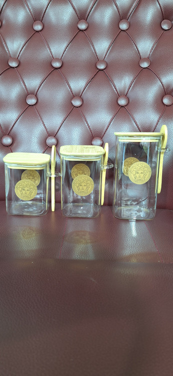 بانکه مربع پیرکس درب بامبو قاشق دار ست 3 تایی وارداتی طرح ورساچه l اصل ( شرکتی )