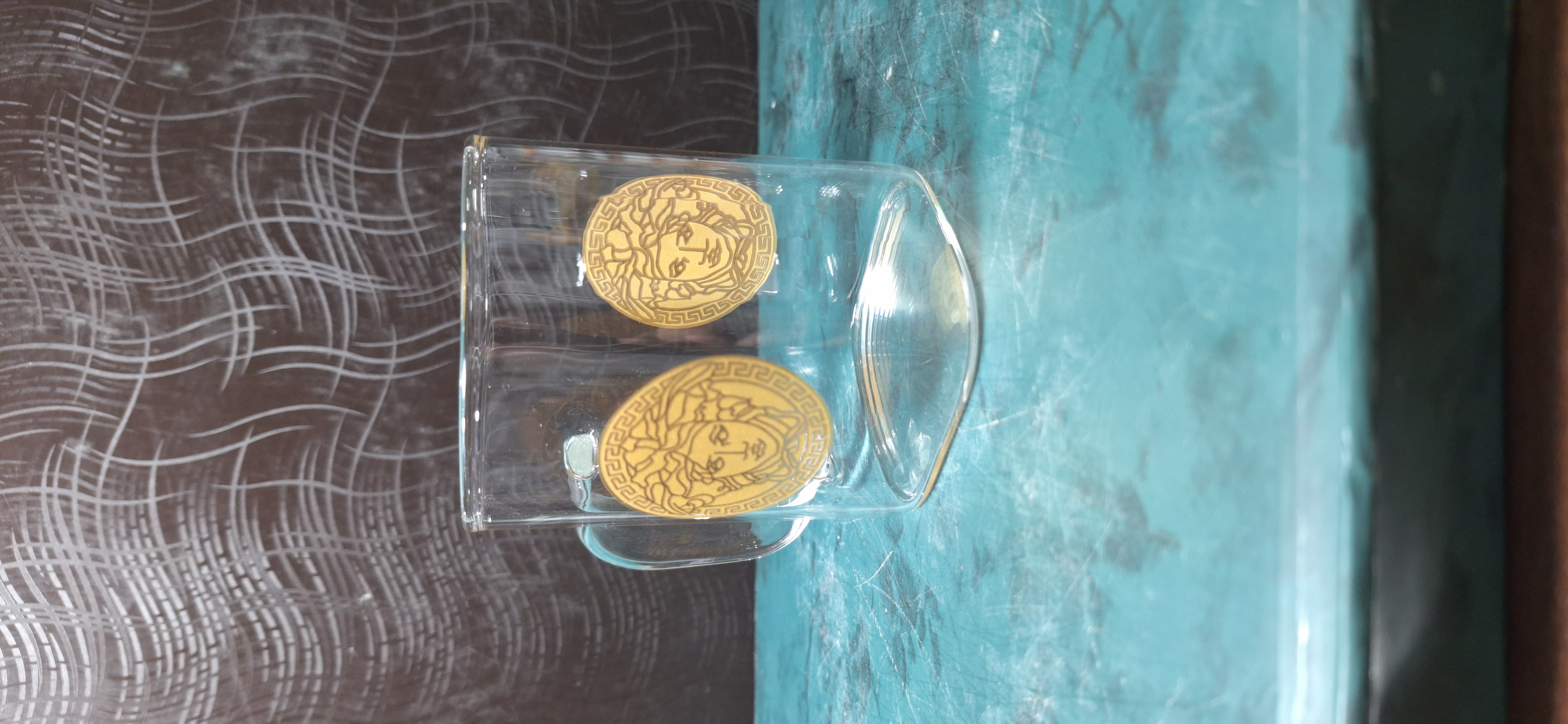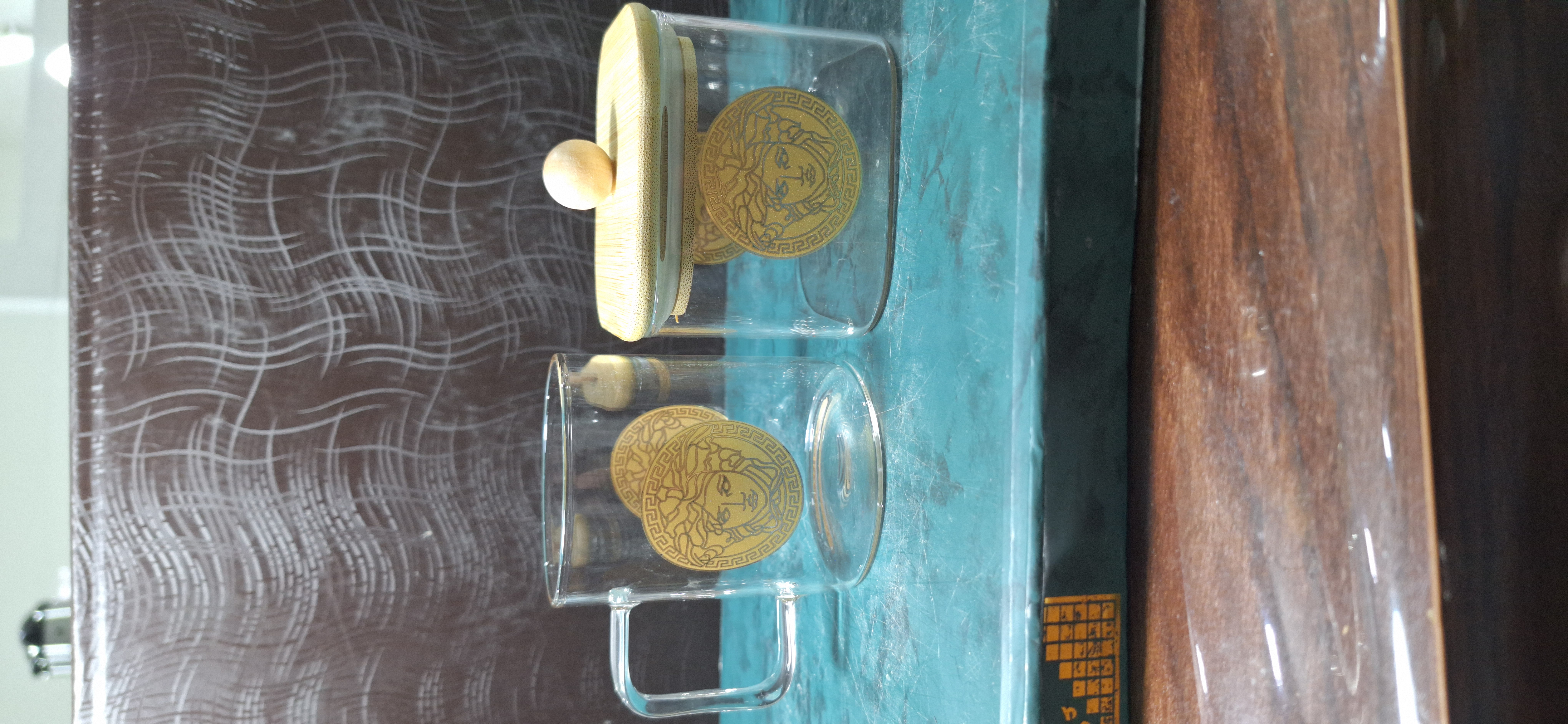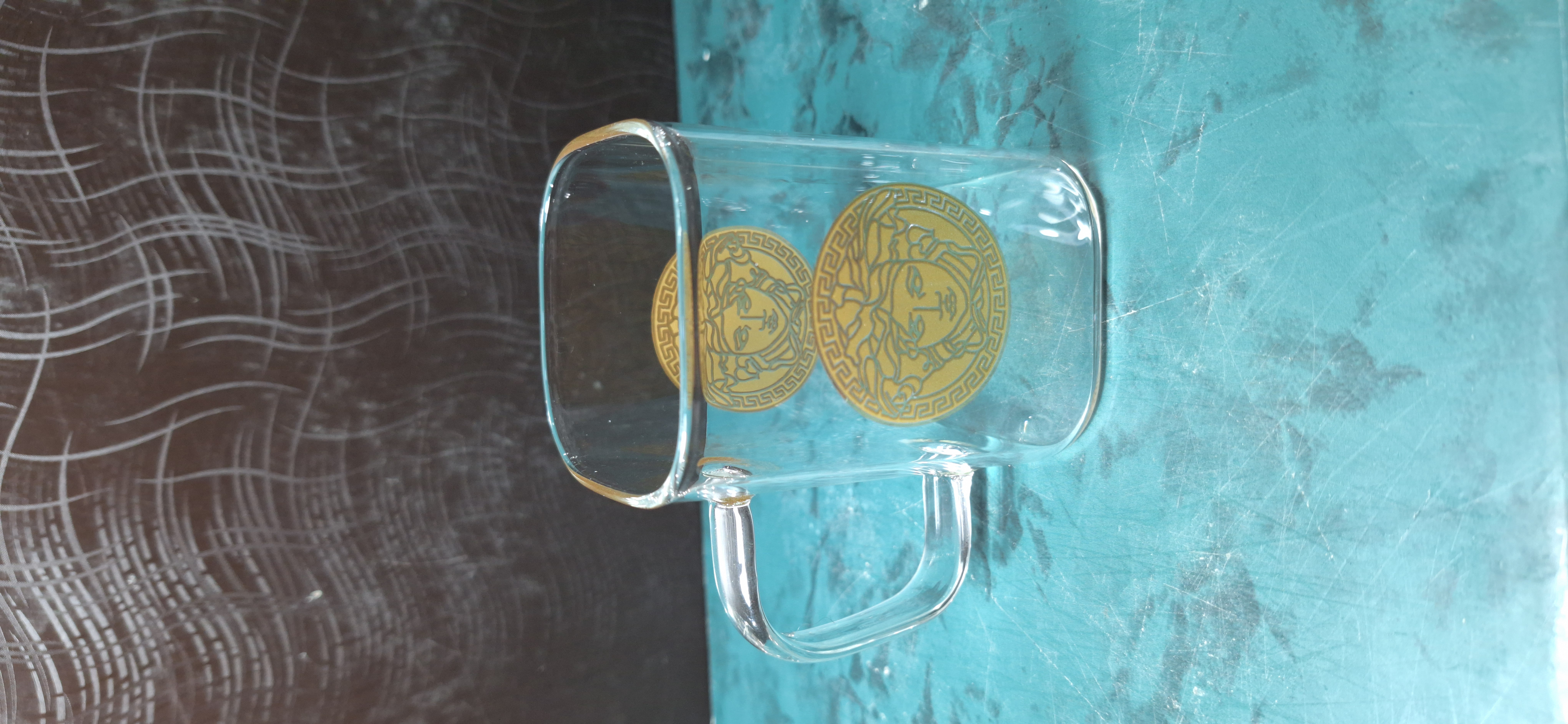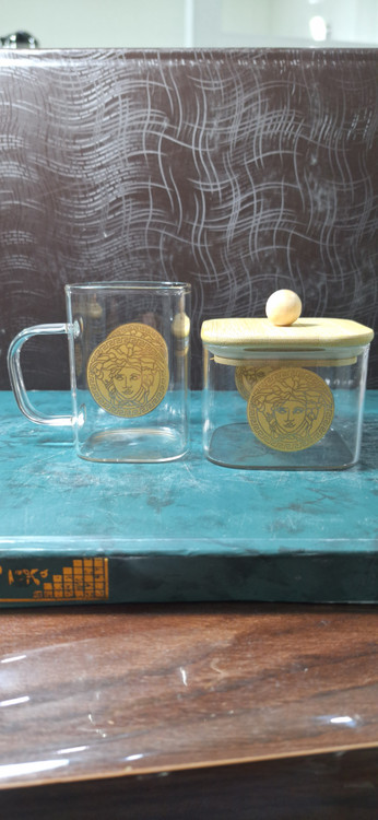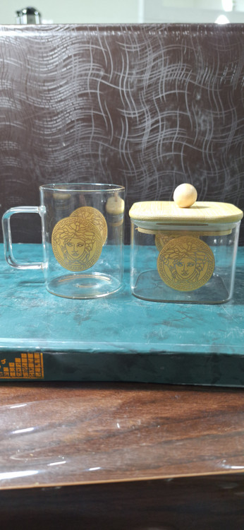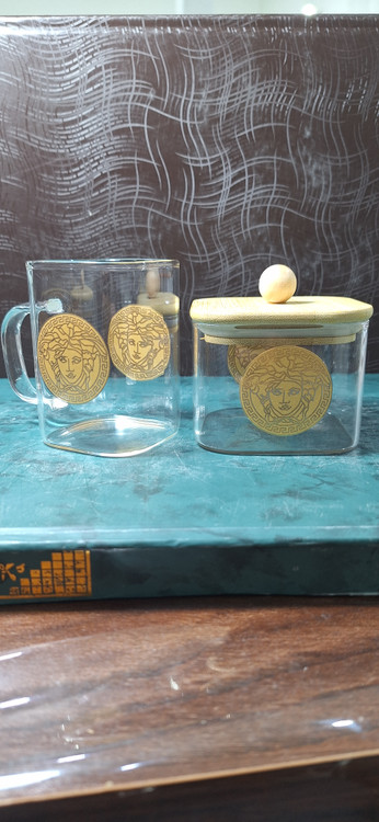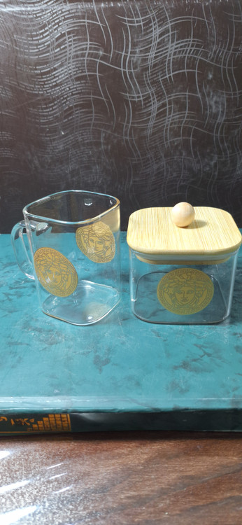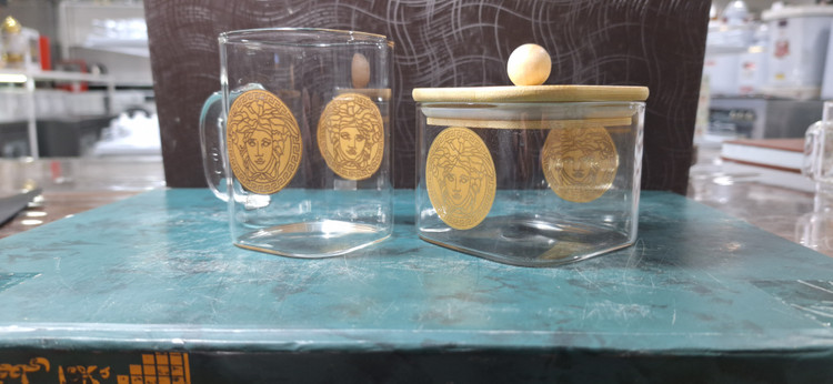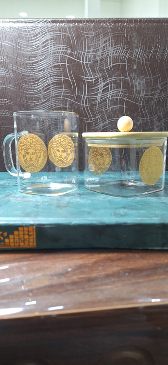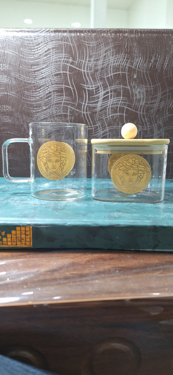 ست 6 تایی استکان پیرکس 230 میل طرح ورساچه + قندان مربع سایز بزرگ