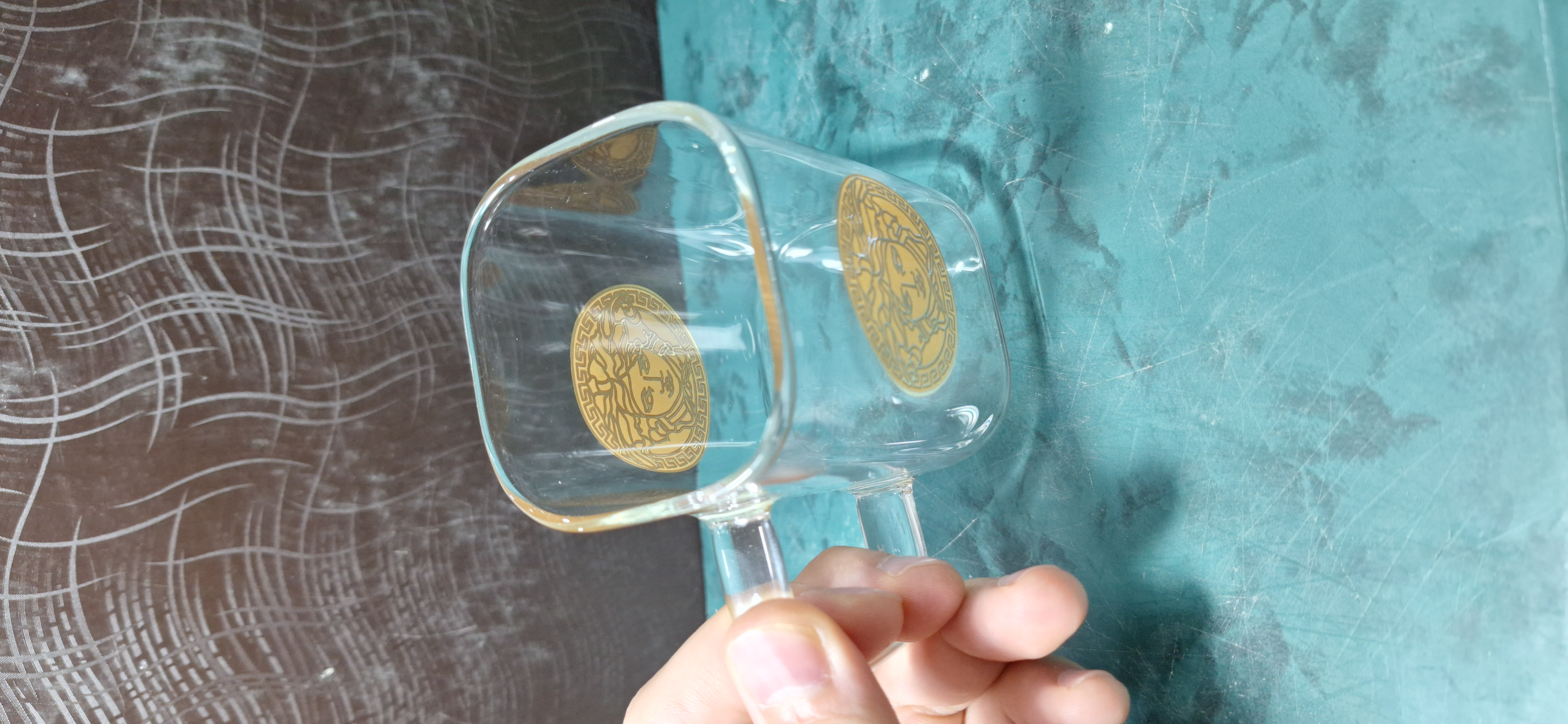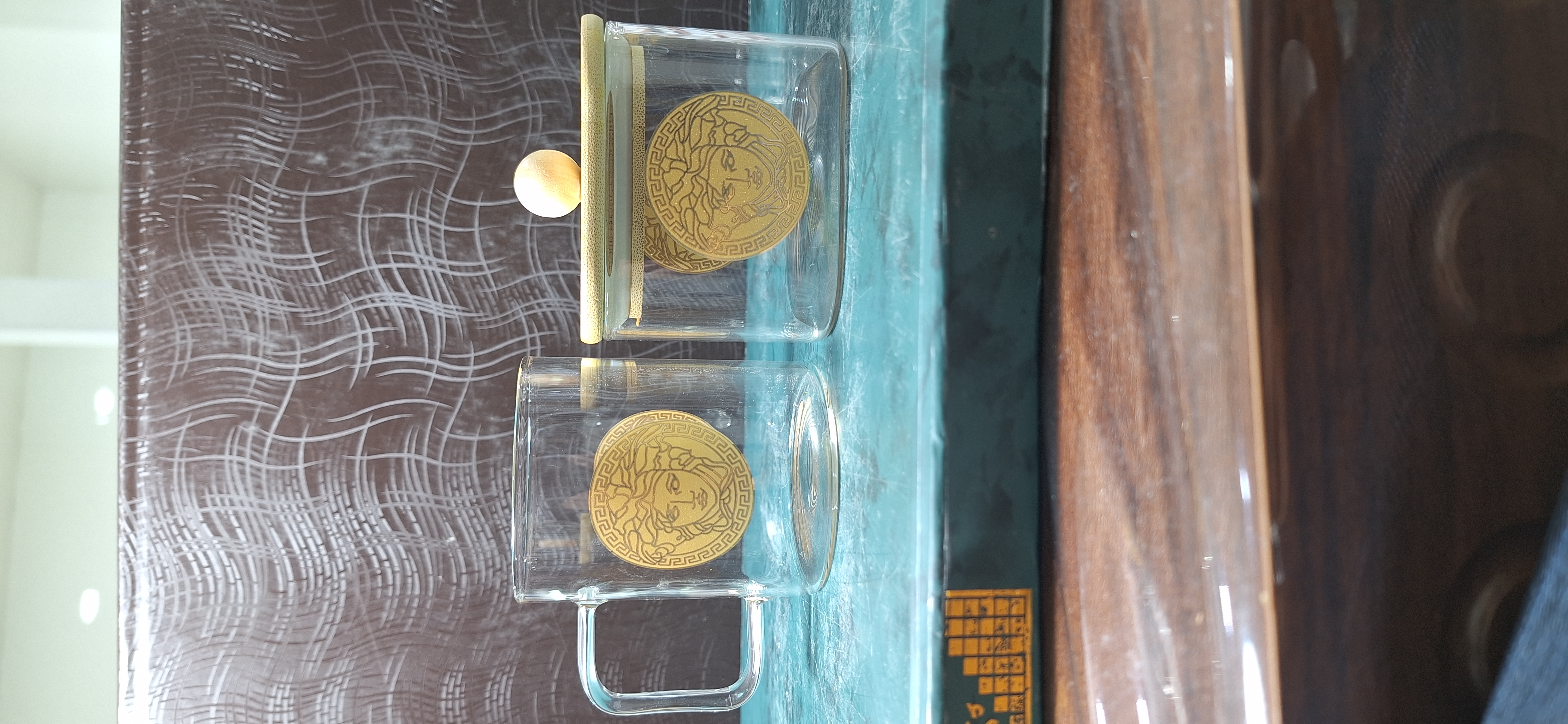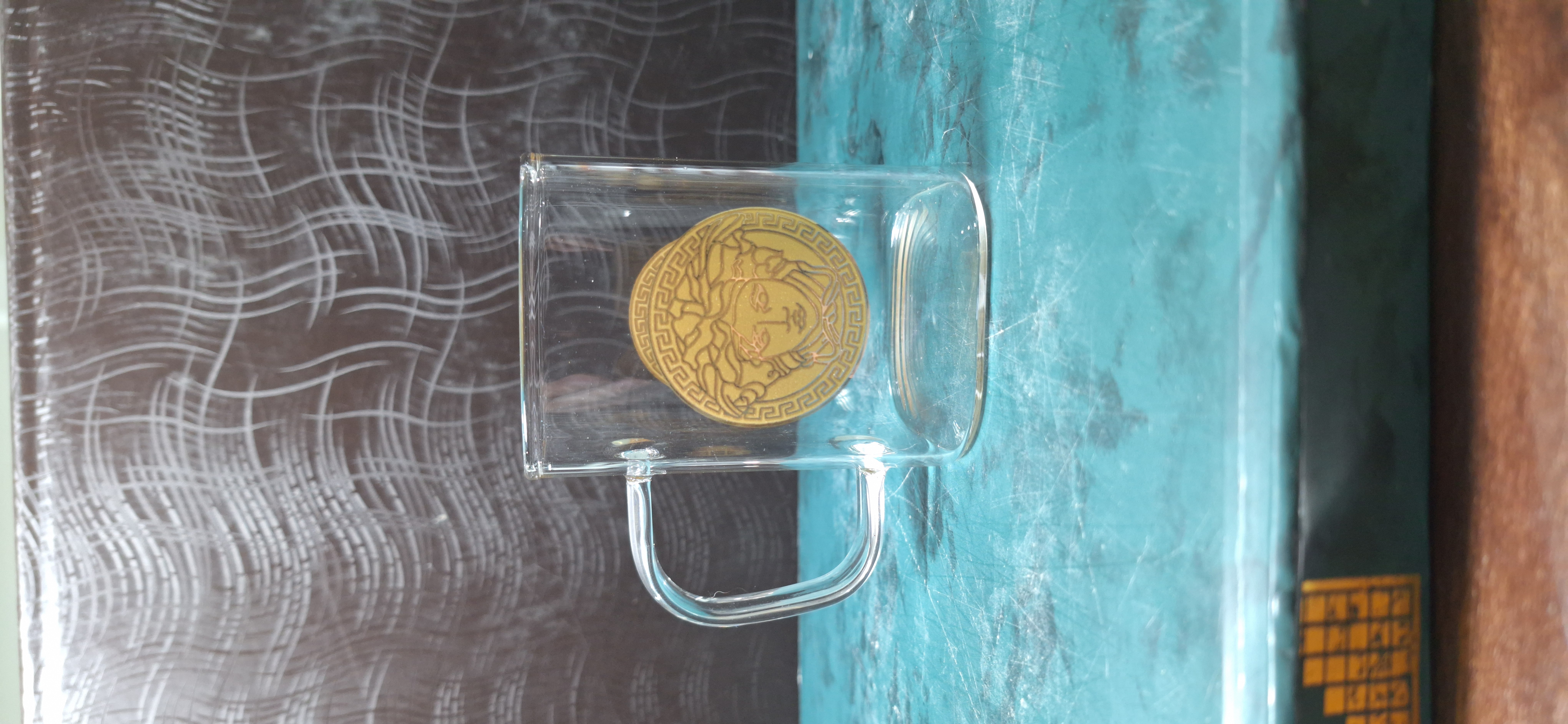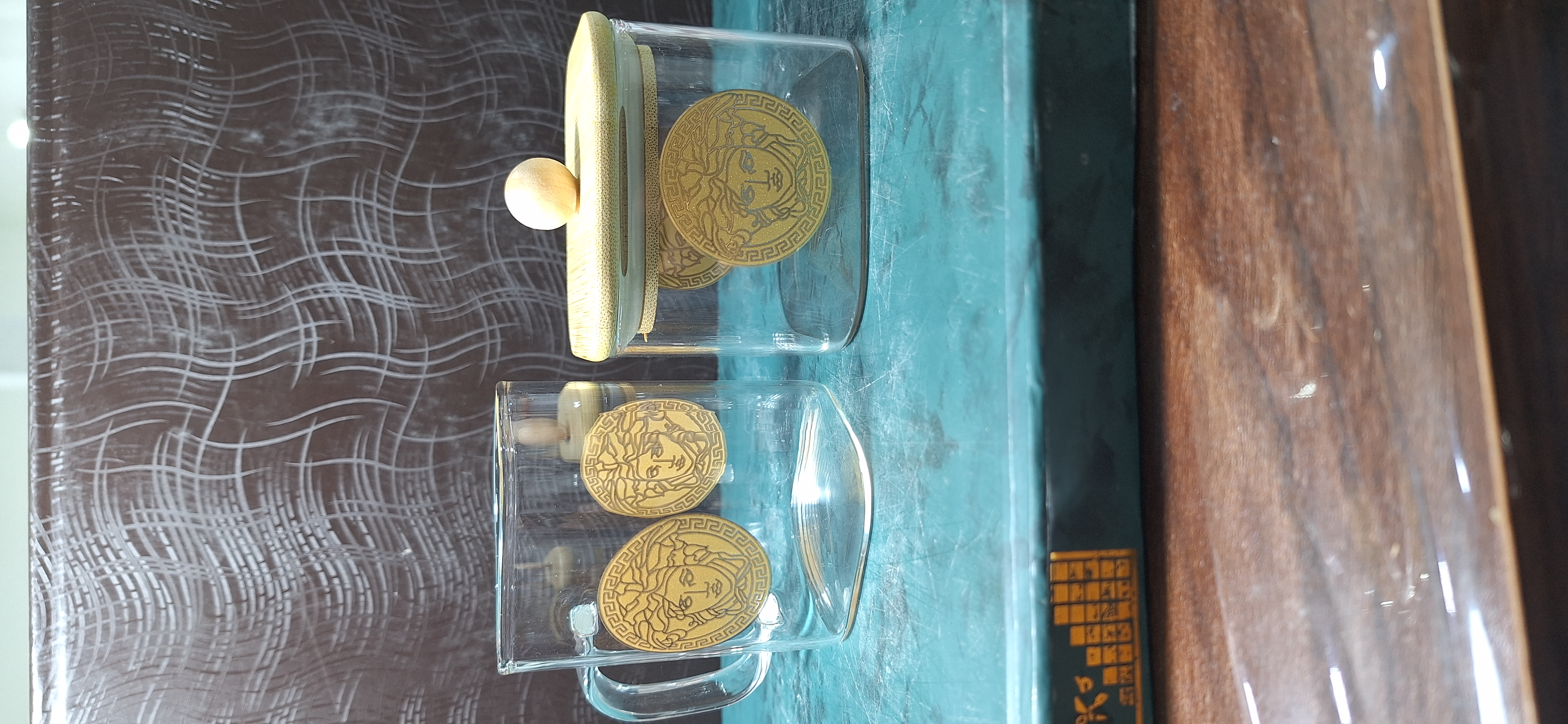 ست 6 تایی استکان پیرکس 230 میل طرح ورساچه + قندان مربع سایز بزرگ
